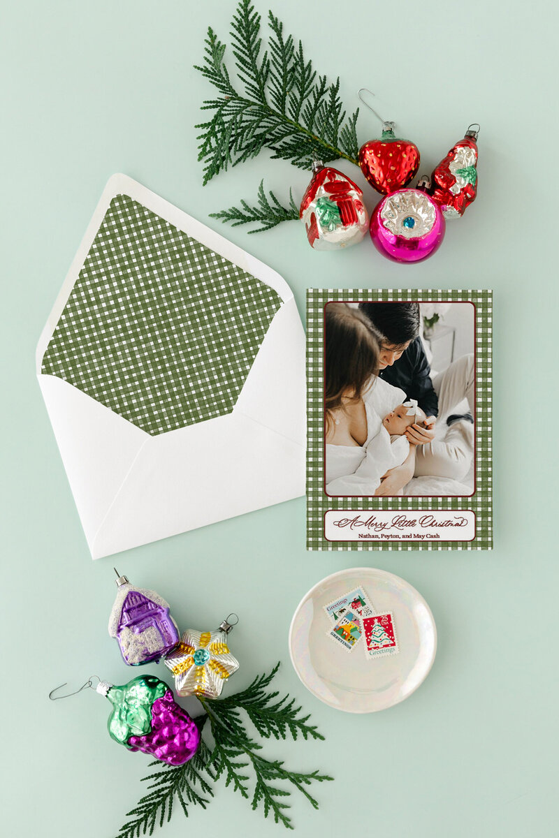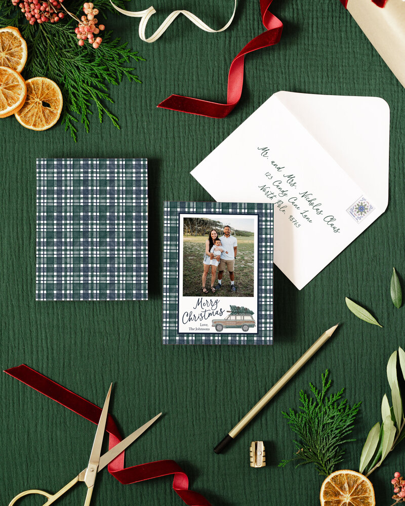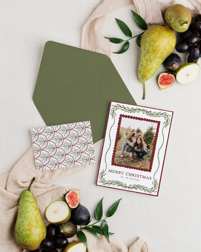I will reach out via email for you to send me your photo(s) and add upgrades you are interested in (envelope liners, orientation change, additional image or text on back of card).